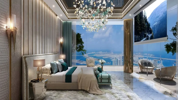 Dubai Harbour’daki ikonik Damac Bay 2, bir apartman kompleksi olarak 1, 2 ve 3 yatak odalı sahil konut daireleri ve 3, 4 ve 5 süper lüks dubleksler sunan 49 katlı bir kuleyi bir araya getiriyor. Her daire, beraberinde gelen tavandan tabana pencereler sayesinde ışıkla dolu yaşam alanları sunuyor. Özel havuzlar ve balkon terası, evin havadar işlevsel yönlerini en üst düzeye çıkarmak için dış planı çevreliyor. Buradan, sakinler Palm Jumeirah’ın üzerinde güneş batarken şehrin parıldayan etkileyici gök mavisi deniz manzarası sahnelerini seyredebilirler.